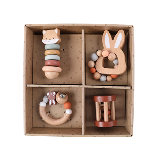 5 in 1, Baby Fox & Sloth Rattle Play Set (Pink)