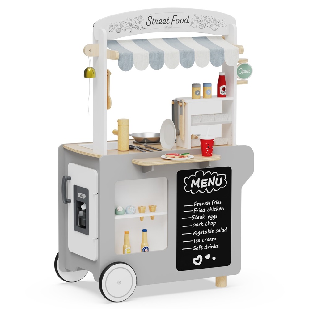 Street Food Fun: 44-piece wooden set with mobile cart and accessories.