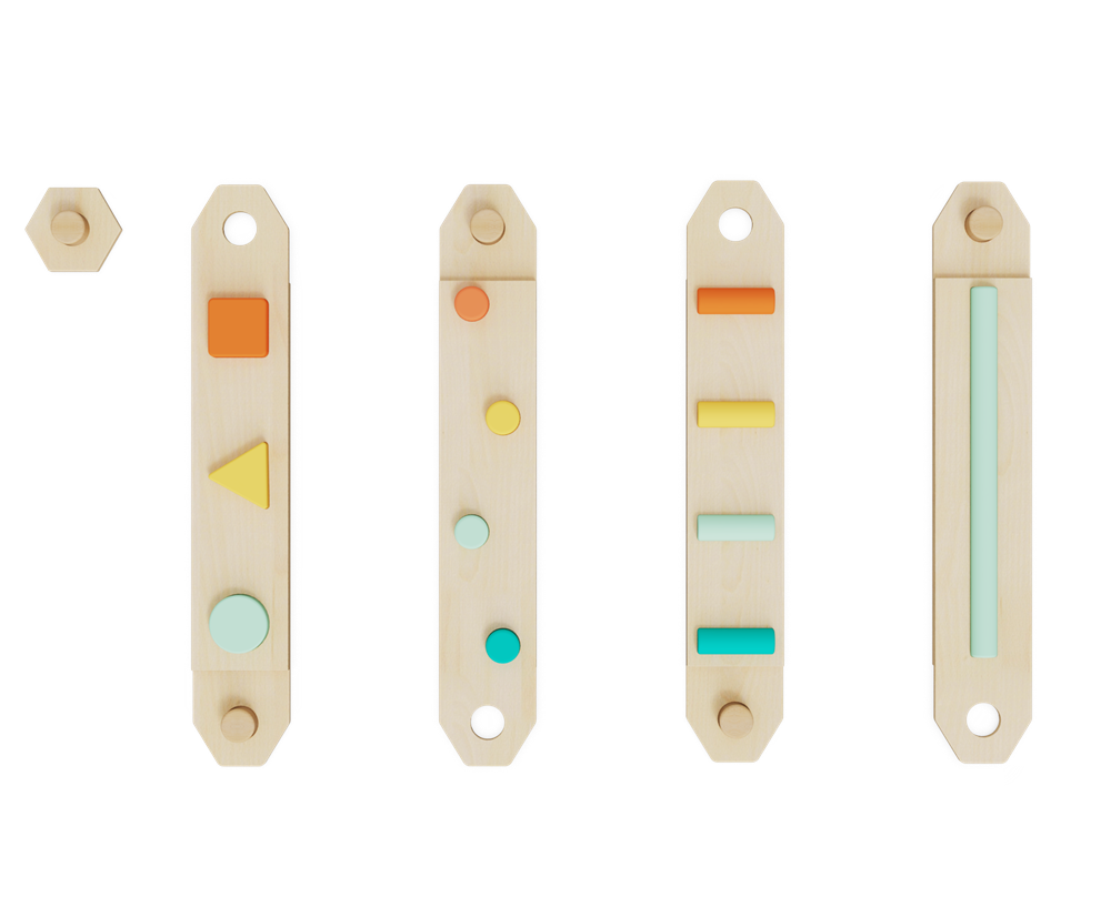 Sensory & Educational Elements: Each beam features vibrant, non-toxic colored shapes (squares, triangles, circles) and textured grips, which help develop fine motor skills, shape recognition, and spatial awareness while balancing.