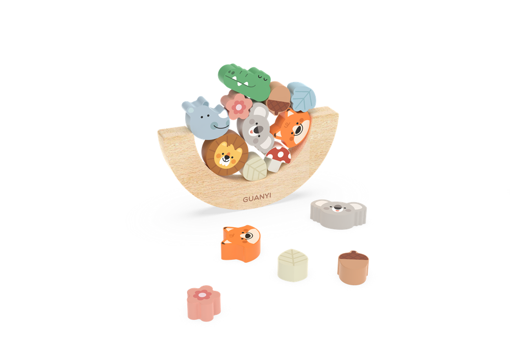 Balanced Stacking Challenge: The curved wooden base provides a wobbly platform for little hands to stack 15 unique wooden pieces, including friendly safari animals (crocodile, lion, fox, koala, hippo) and nature-inspired elements (flowers, leaves, acorns). This encourages focus, patience, and an understanding of balance and gravity.