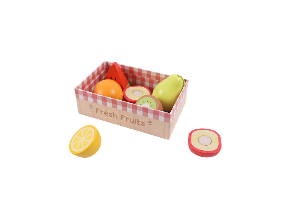 This delightful wooden fresh fruits playset brings the vibrant sweetness of a farmers’ market to pretend play, perfect for little food lovers aged 2 and up. Crafted from smooth, child-safe wood with non-toxic, water-based finishes, it features realistic details and velcro fasteners to create an engaging, hands-on learning experience.
