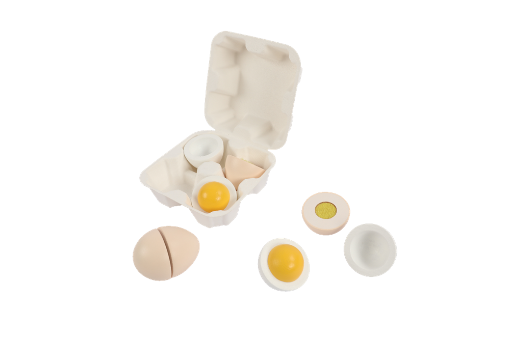 This realistic wooden egg set playset brings the cozy charm of kitchen preparation to pretend play, perfect for little chefs aged 2 and up. Crafted from smooth, child-safe wood with non-toxic, water-based finishes, it mimics real egg varieties to create an engaging, hands-on learning experience.