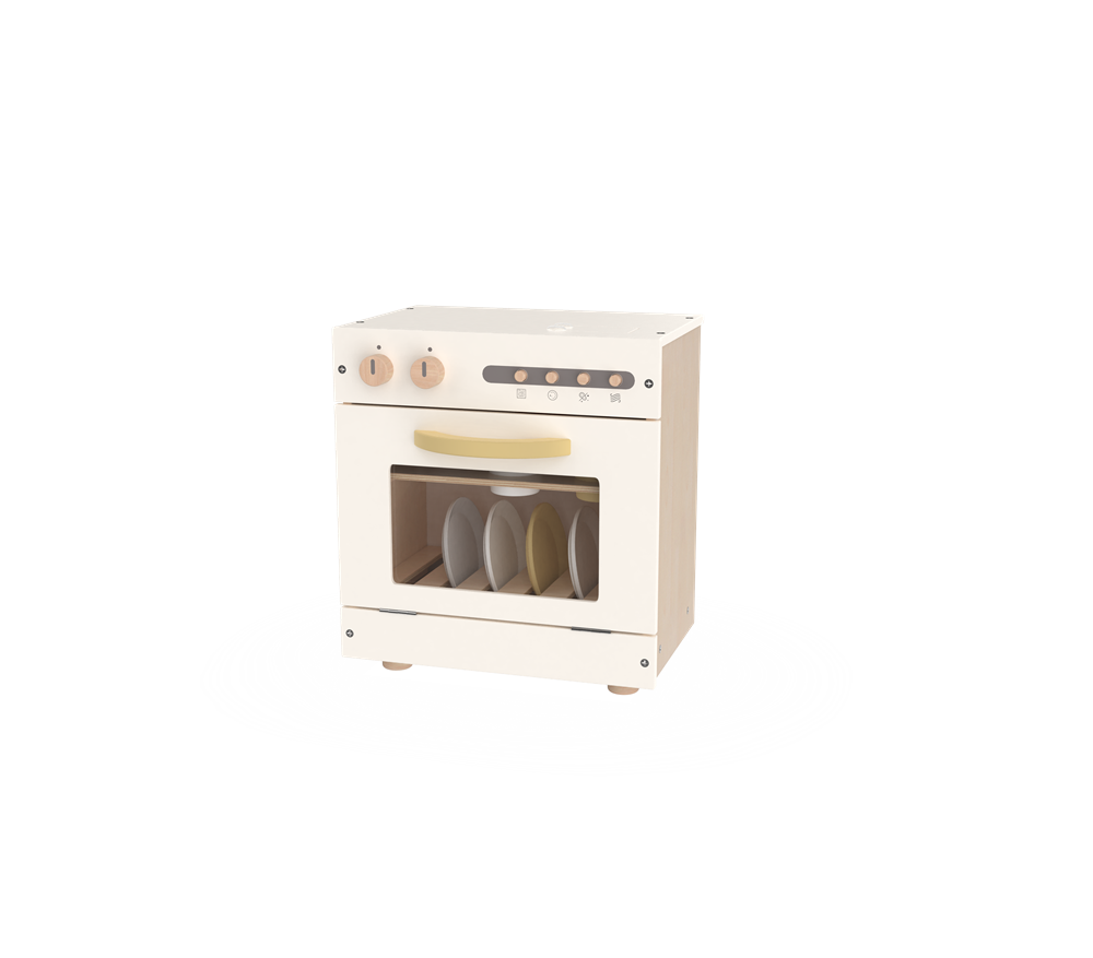 This minimalist wooden dishwasher playset brings the charm of household chores to pretend play, perfect for little helpers aged 3 and up. Crafted from smooth, child-safe wood with non-toxic creamy white finishes, it mimics the look and function of a real dishwasher while ensuring safe, engaging play.