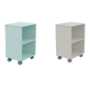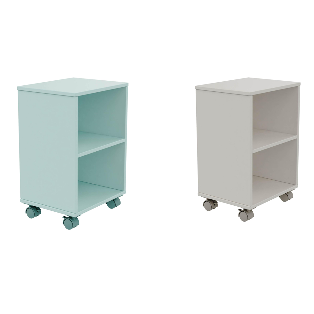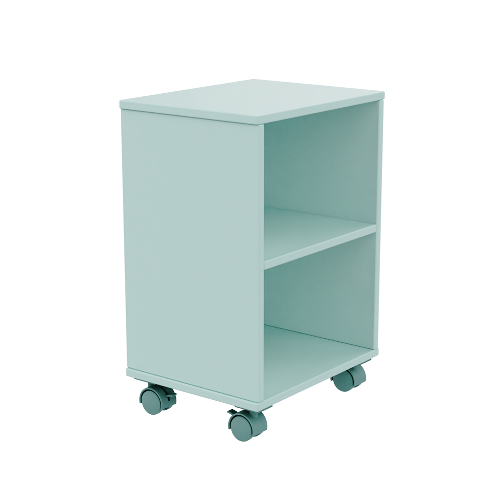 This compact rolling storage cabinet features an open-front design with two shelves and lockable caster wheels. Made from safe, durable MDF with non-toxic finishes (mint green & light gray), it’s ideal for organizing toys, books, or office supplies. A mobile, stylish solution for any room, compliant with EN 71/ASTM safety standards.