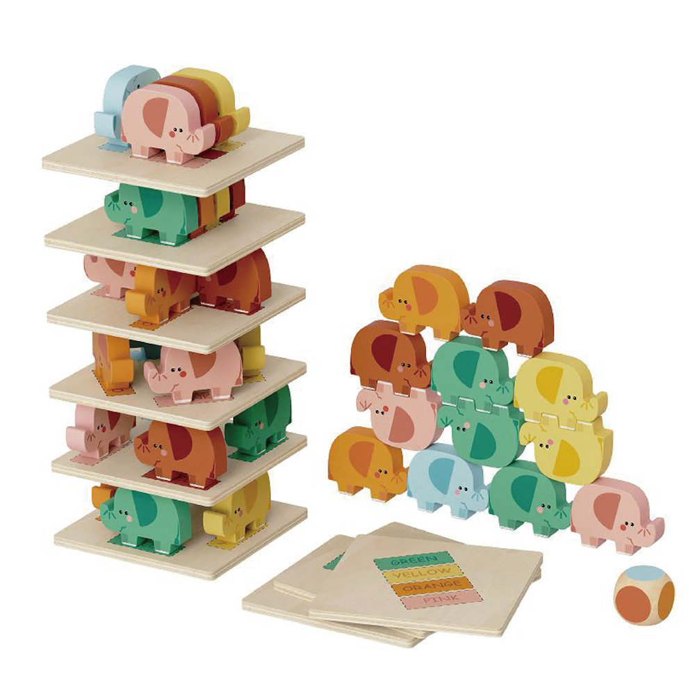Multi-mode play: Kids can stack elephants on the tower board, balance them into free-standing piles, or follow challenge cards to match colors—encouraging open-ended, creative play.