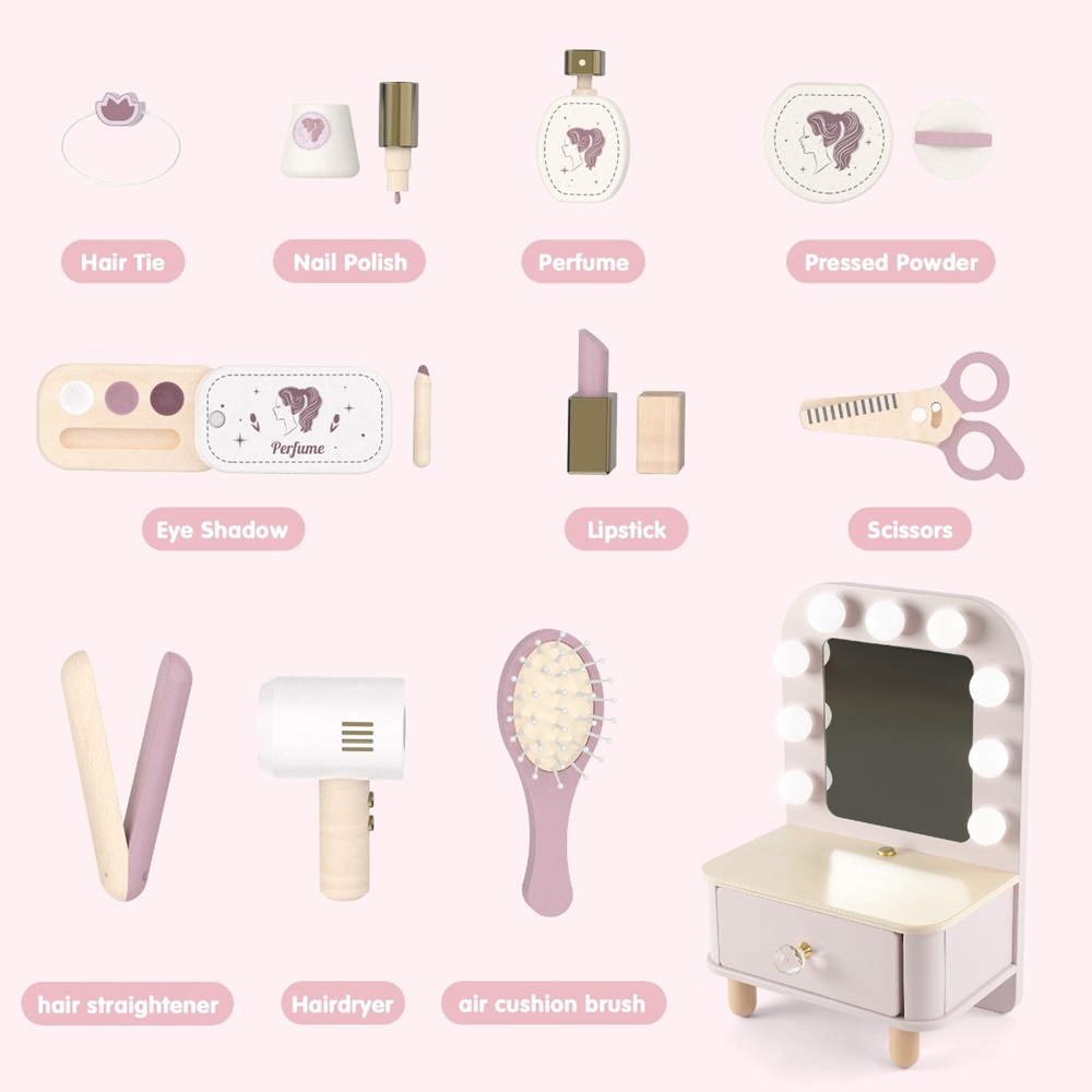 Dressing Table Fun: 15-piece wooden set with mirror and accessories.