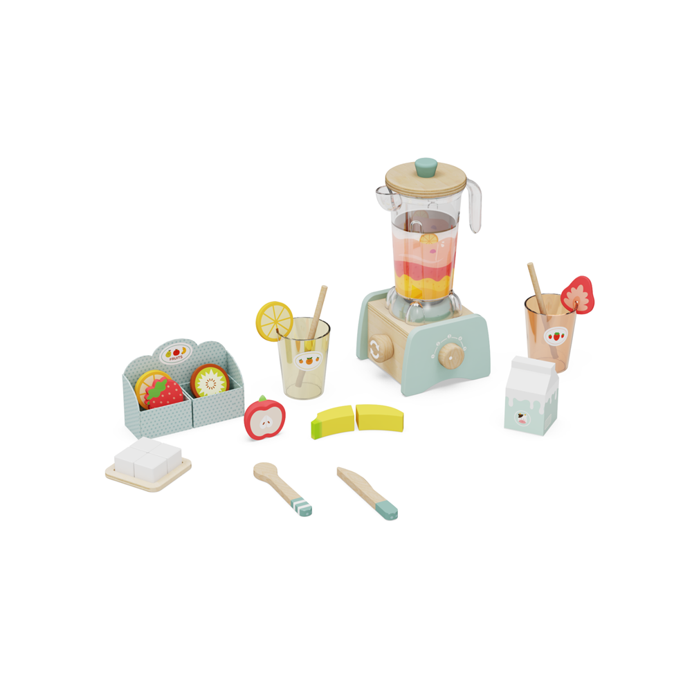 This refreshing wooden smoothie & juice blender playset brings the joy of fresh, healthy drink-making to imaginative play, perfect for little baristas aged 3 and up. Crafted from smooth, child-safe wood with non-toxic, pastel finishes, it’s packed with realistic details to create an engaging, hands-on learning experience.